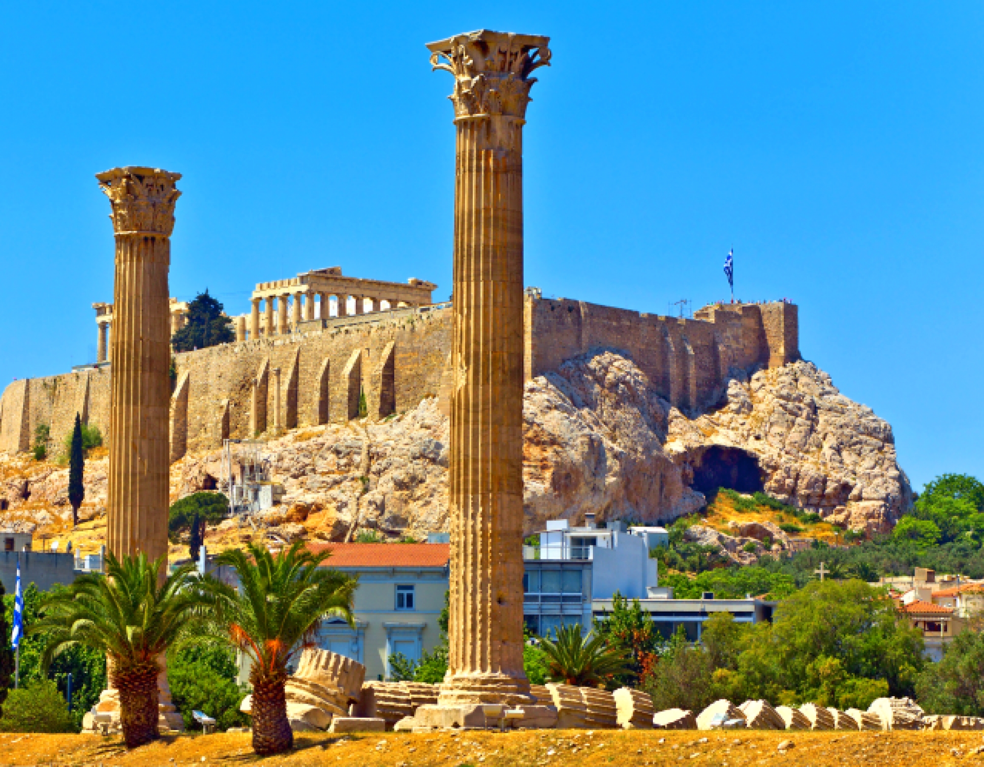 The Temple of Olympian Zeus was the biggest in the world at that time, with a length of 110 meters and a width of 45. In its internal there were statues of Zeus and the emperor Hadrian.